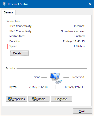 If this is not 1.0 Gbps, first check the switch/mode it is connected to supports Gigabit.